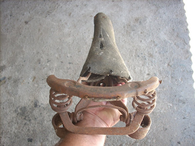 As coisas começam a moldar - se seriamente em volta da maior concentração de bicicletas antigas da Beira. Estamos a preparar tudo ao pormenor, ou não fosse apanágio das coisas por aqui, pela Lardosa. Quanto a mim, já comecei a preparar um novo selim oferta do meu amigo Luis Franco. Tenho visto poucos como este. O Sarugo tem um igual, mas poucos mais conheço. Ora dêem uma olhadela ao antes e ao depois; Depois, mas não depois final, porque esse final ainda demora.