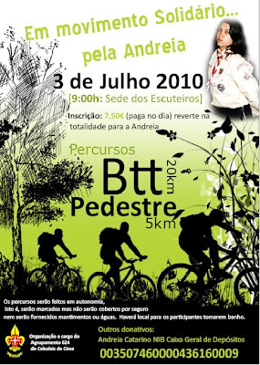 Olá meus amigos, antes de mais queria aqui relembrar para quem quiser ajudar a Andreia, filha de um colega meu de profissão que está comigo em Castelo Branco, o favor de colaborar nesta acção solidária. Dêem uma olhadela no cartaz do lado direito do blog. Colaborem.